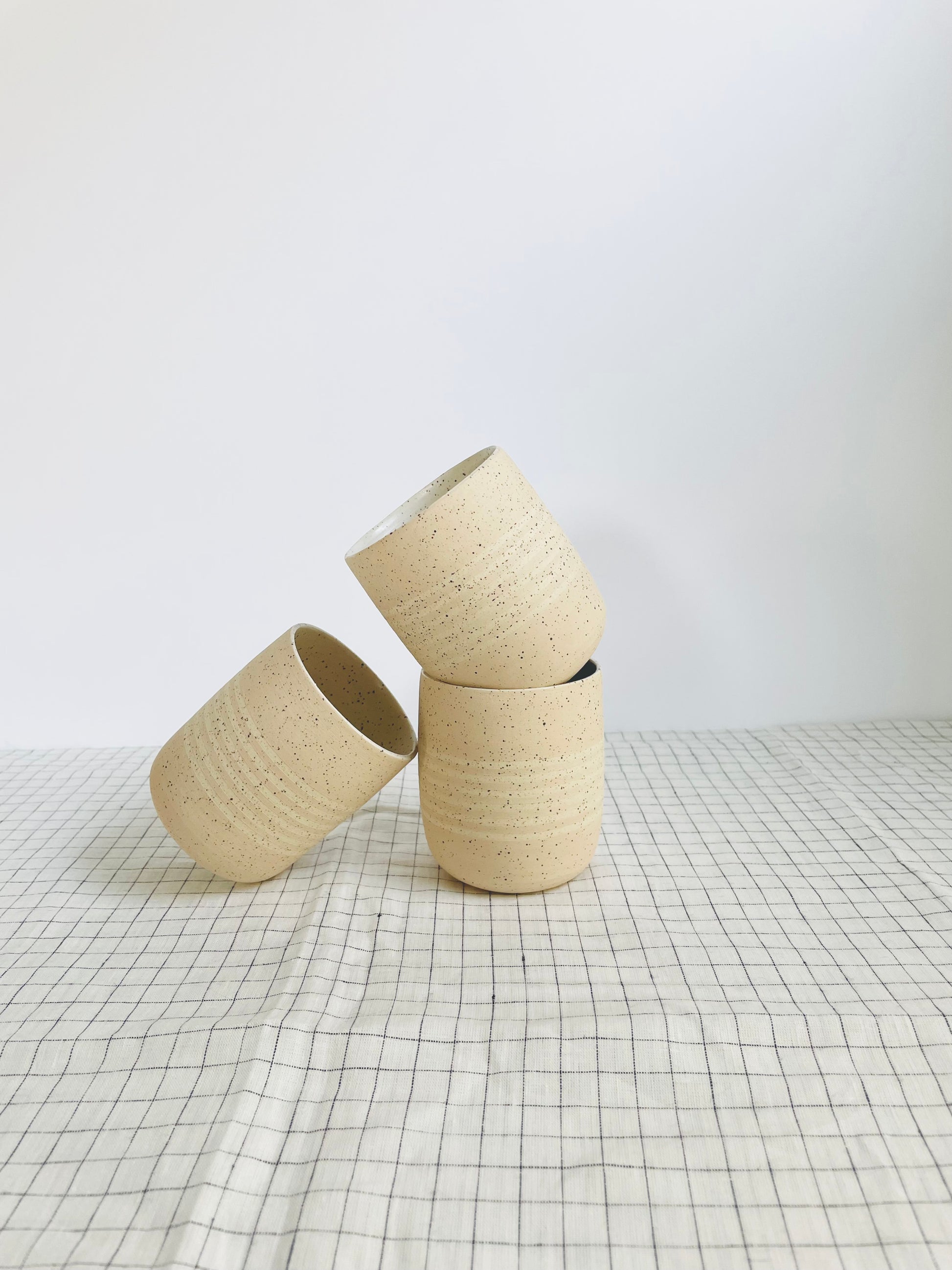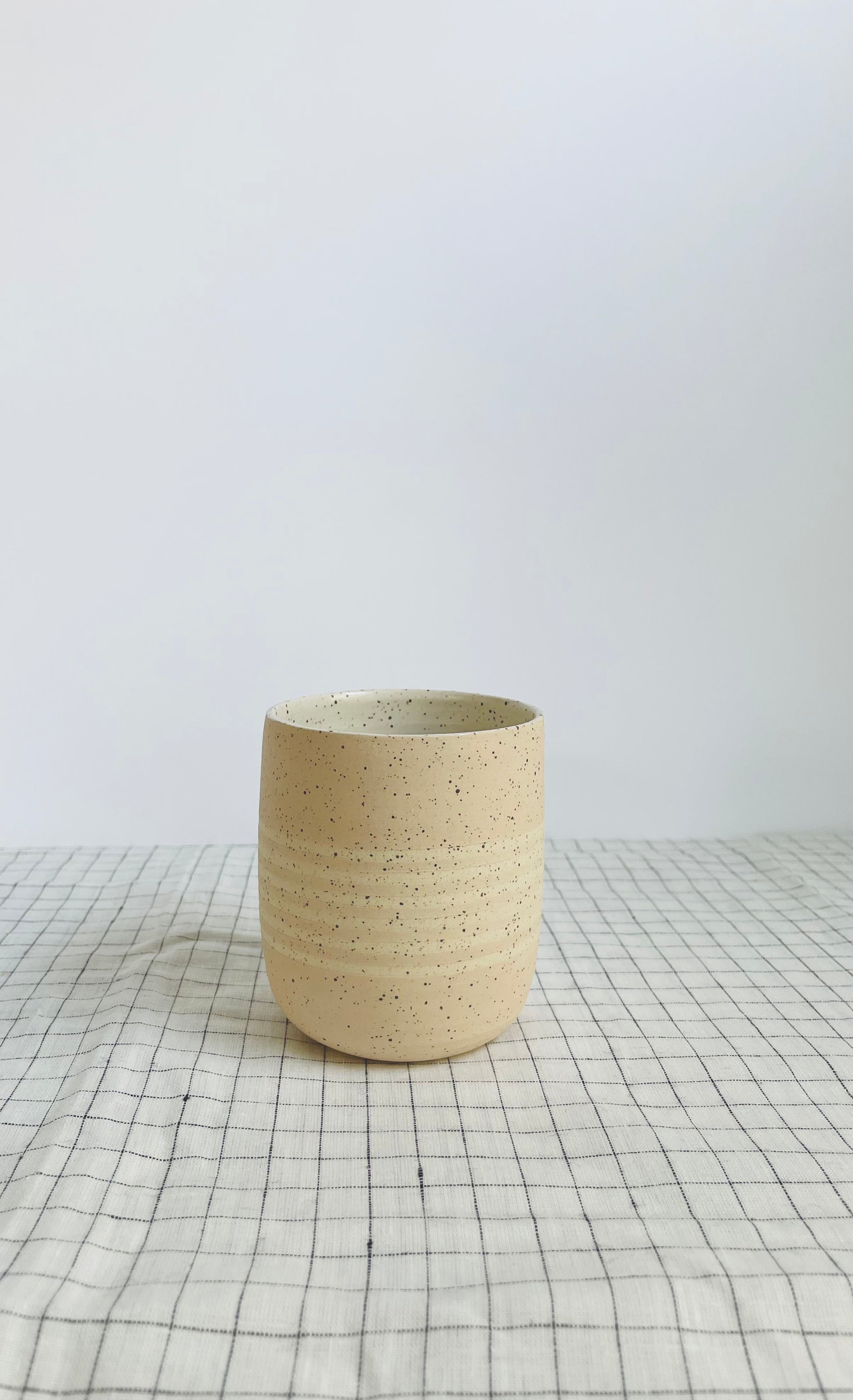 Each vessel is handmade from a speckled stoneware clay and hand-painted with unique glazes. Because of the nature of handmade goods, not every item is exactly the same. Small imperfections and variations in each piece are what make handmade goods one of a kind.